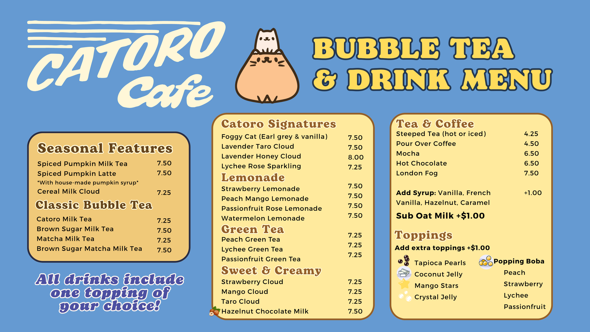 Every bubble tea helps support the rescue kitties living at our Cat Cafe!