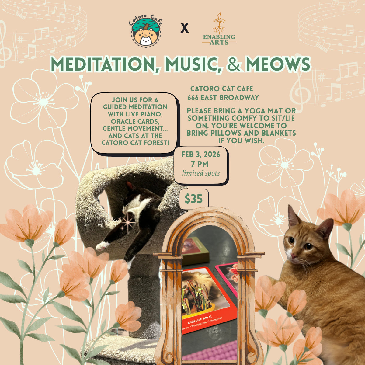 Join us for a guided meditation with live piano music, gentle movements, oracle cards... and cats.